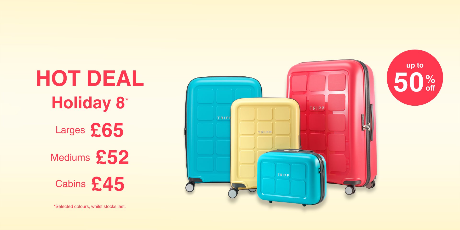Discover the fantastic range of suitcases, cabin cases, and travel bags on the Tripp Luggage website. As the UK’s number one retailer of suitcases and luggage, you’ll find various luggage options in multiple styles, sizes and colours. Tripp suitcases are available in soft and hard shell options, offering you a fabulously stylish yet durable piece of luggage...