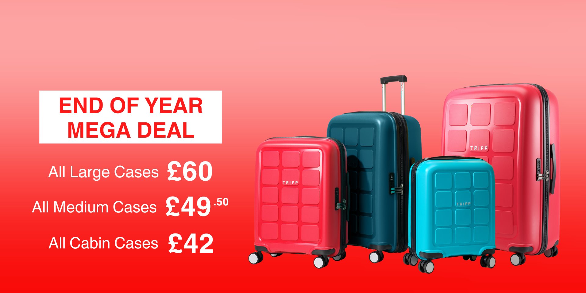 Discover the fantastic range of suitcases, cabin cases, and travel bags on the Tripp Luggage website. As the UK’s number one retailer of suitcases and luggage, you’ll find various luggage options in multiple styles, sizes and colours. Tripp suitcases are available in soft and hard shell options, offering you a fabulously stylish yet durable piece of luggage...