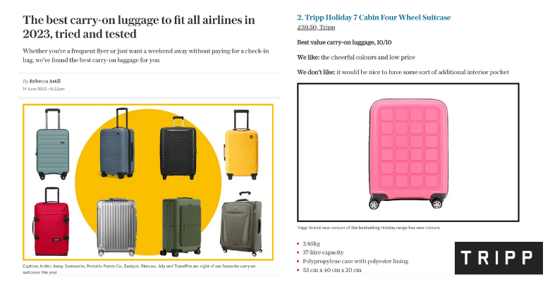 Tripp Luggage In The Press - May to June 2023